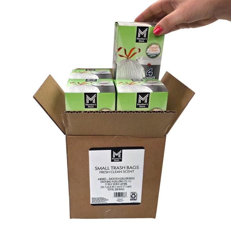Trash can get smelly, but Member's Mark 4-Gallon Drawstring Trash Bags are infused with a crisp Fresh Clean scent to help eliminate tough odors. The fragrance is built into each bag, providing long-lasting freshness until it's time to take out the trash.