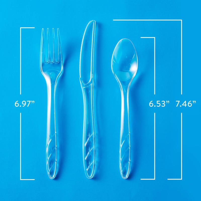 The clear plastic utensils feature a sleek and modern design that will complement any table setting. Their translucent appeal adds a touch of elegance, making them perfect for both casual and formal gatherings. Whether you're hosting a holiday dinner party or a summer cookout, these utensils will surely enhance the dining experience.