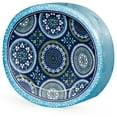 Bring a touch of sophistication to your table with the intricate medallion design featured on these plates. The bold pattern showcases layered circular mandalas in rich shades of blue and green, accented with geometric details and small floral elements. A bright aqua border with soft white floral detailing frames the design, creating a polished and decorative finish that complements any celebration.