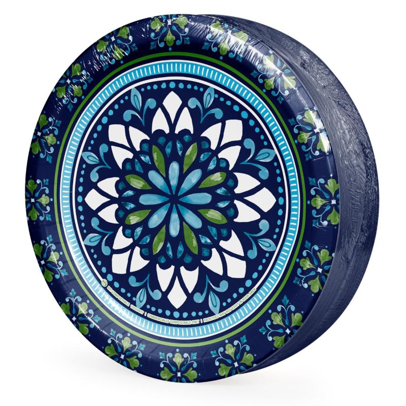 Crafted from high-quality, eco-friendly materials, these Mosaic Medallion plates are not only beautiful, but also sturdy enough to hold your favorite dishes without bending or leaking. Their generous size accommodates everything from appetizers to desserts, ensuring your table setting looks effortlessly chic. With a convenient 85 count pack size, you'll have plenty of plates for all your guests, making clean up a breeze so you can focus on what truly matters—enjoying your time together.