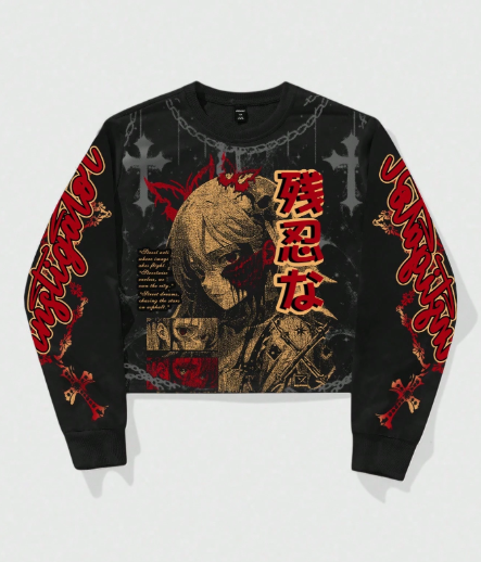 MEN Men's Anime Girl Graphic Long Sleeve Sweatshirt, Fall