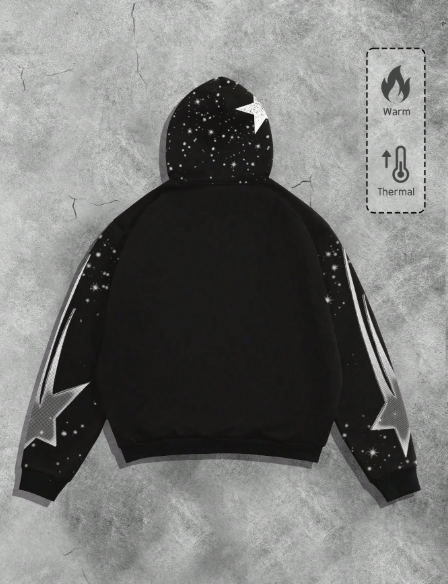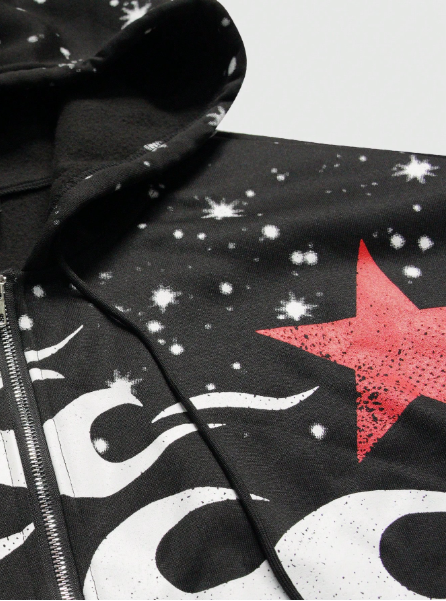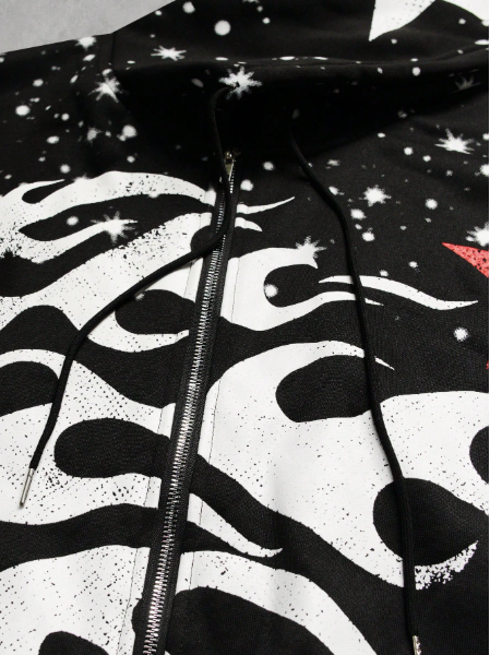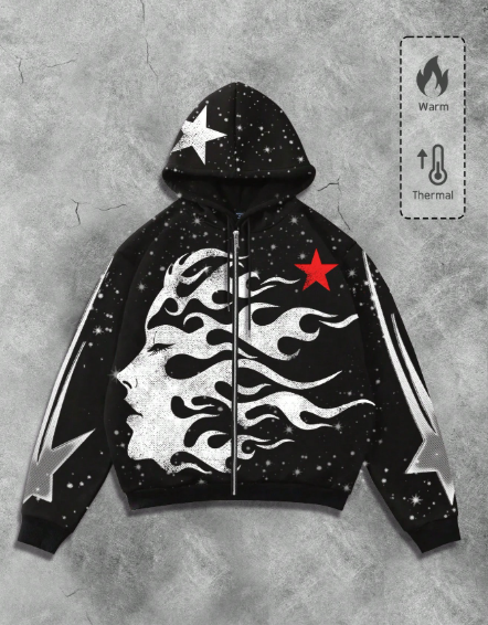 MEN Street Life Men's Autumn/Winter Person & Pentagram Punk Print Thermal Lined Casual Zip-Up Hoodie Sweatshirt