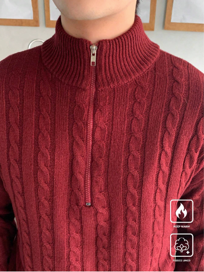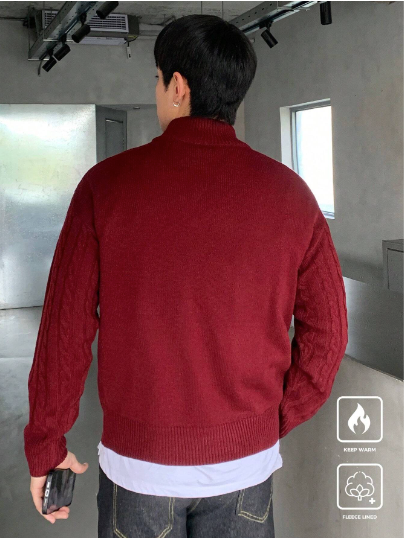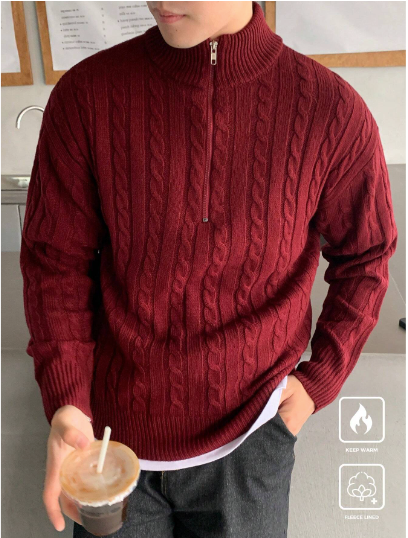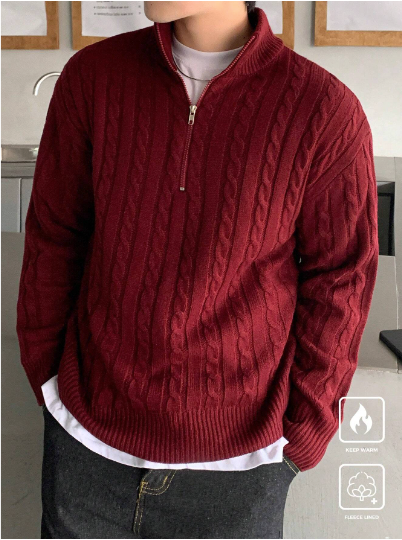 Men's Half Zip Textured Knit Pullover Sweater, Casual And Versatile, Long Sleeve, Men Red Sweater, Men Burgundy Sweater