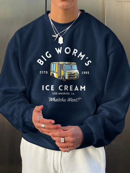 Men's Letter Print Round Neck Long Sleeve Slim Fit Casual Lightweight Sweatshirt, Spring/Autumn