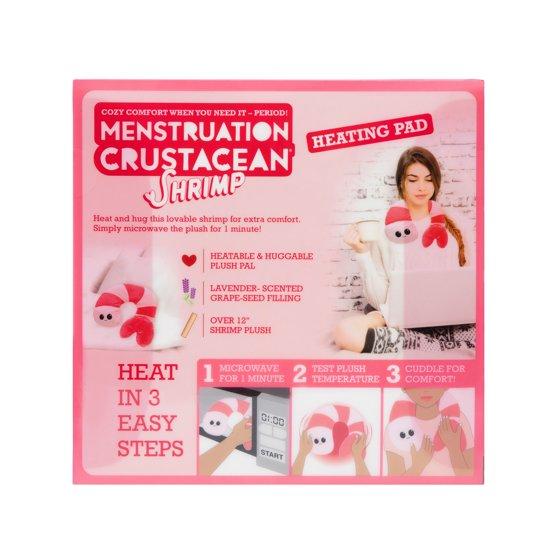 - It's shrimp-tastic! The Menstruation Crustacean Shrimp is an easy-to-use microwavable heating pad that features period cramps and muscle pain relief.
