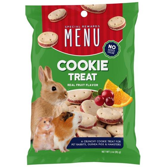 Menu Cookies with Cranberries are crunchy, oven baked treats made with real cranberries and oranges. These treats help to satisfy your pet's natural gnawing instinct and are ideal for Pet Rabbits, Guinea Pigs and Hamsters.