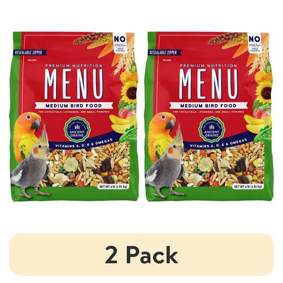 (2 pack) Menu Vitamin Fortified Food for Cockatiel, Lovebirds, and Small Consures, 4 lb