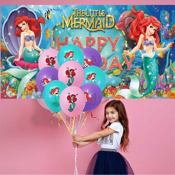 - 【Birthday Party Supplies】-This The Little Mermaid themed birthday party supplies set includes: 8pcs x 7 inch plates, 1pcs Big Cake Topper,12pcs Cupcake Toppers,16~18pcs Balloons,1pcs 5*2.3 ft Backdrop.