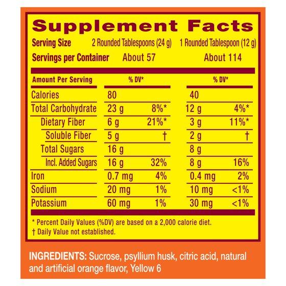 Sucrose, Psyllium Husk, Citric Acid, Natural And Artificial Orange Flavor, Yellow 6
