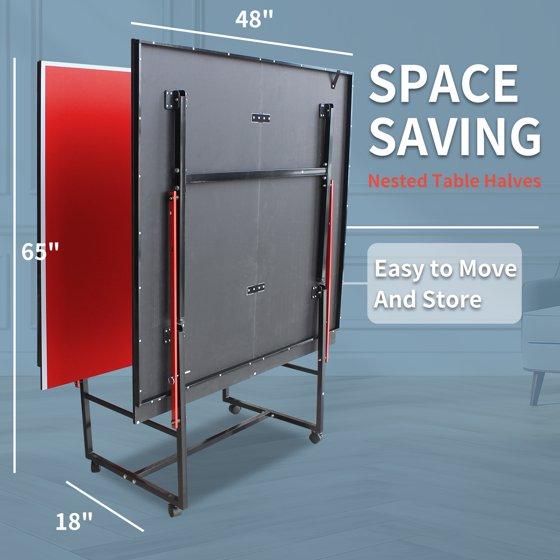 - 【Space-Saving Champion】This 96"x48" table tennis table folds to just 18" thick! Stores vertically against walls for apartments and small spaces.