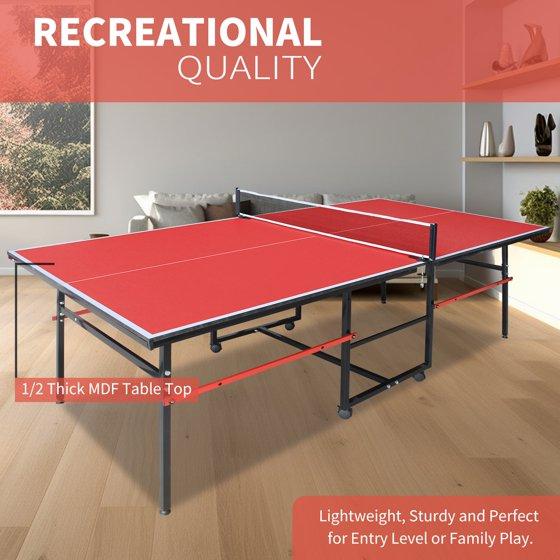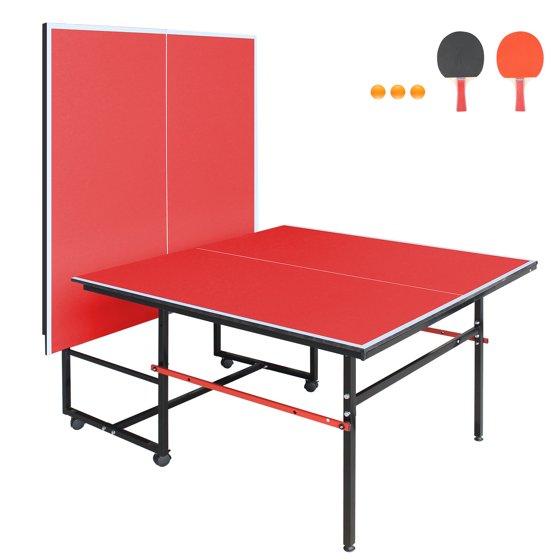 Mid-Size Table Tennis Table, SEGMART 8FT Foldable Outdoor Ping Pong Table with Net, 2 Table Tennis Paddles and 3 Balls, Portable Table Tennis Game Set for Indoor Outdoor, Red