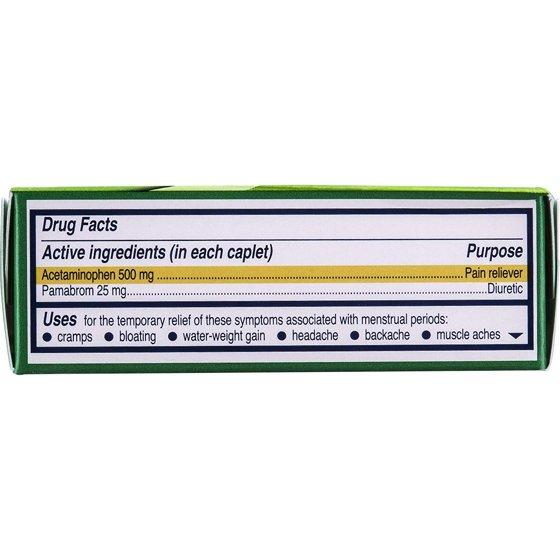 - MAXIMUM STRENGTH PAIN RELIEVER: Midol caffeine-free caplets contain 500 mg of acetaminophen and 25 mg of pamabrom. Plus, Midol is aspirin-free.