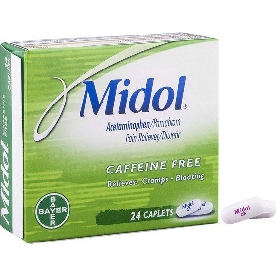 - Midol caffeine free caplets helps you get rid of symptoms associated with menstruation period so you can get on with your life