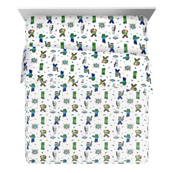 - Minecraft Against Mobs 3-Piece Queen Sheet Set, Polyester, White, Mojang