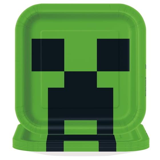 Minecraft Creeper Face Square 9" Dinner Plates, 8ct