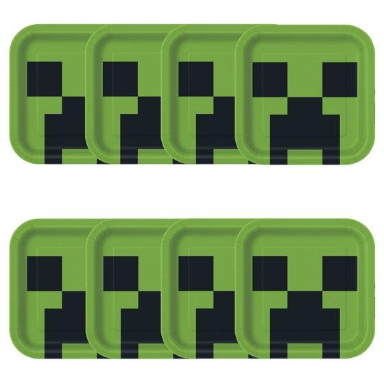 Minecraft Creeper Face Square 9" Dinner Plates, 8ct