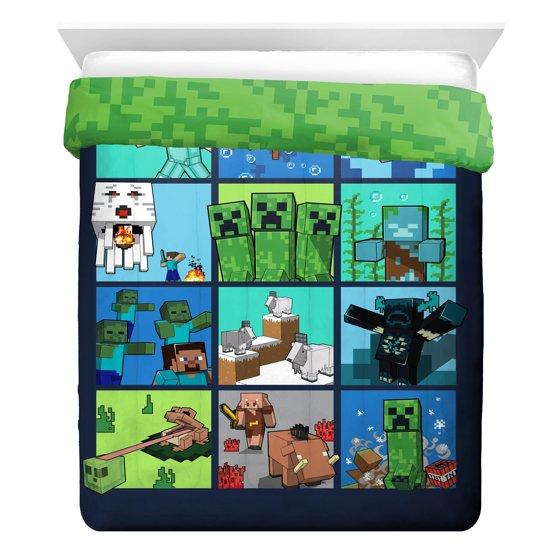- Minecraft Against Mobs 3-Piece 86" x 86" Reversible Queen Comforter and 20" x 30" Pillowcase Set, Polyester, Multicolor, Mojang