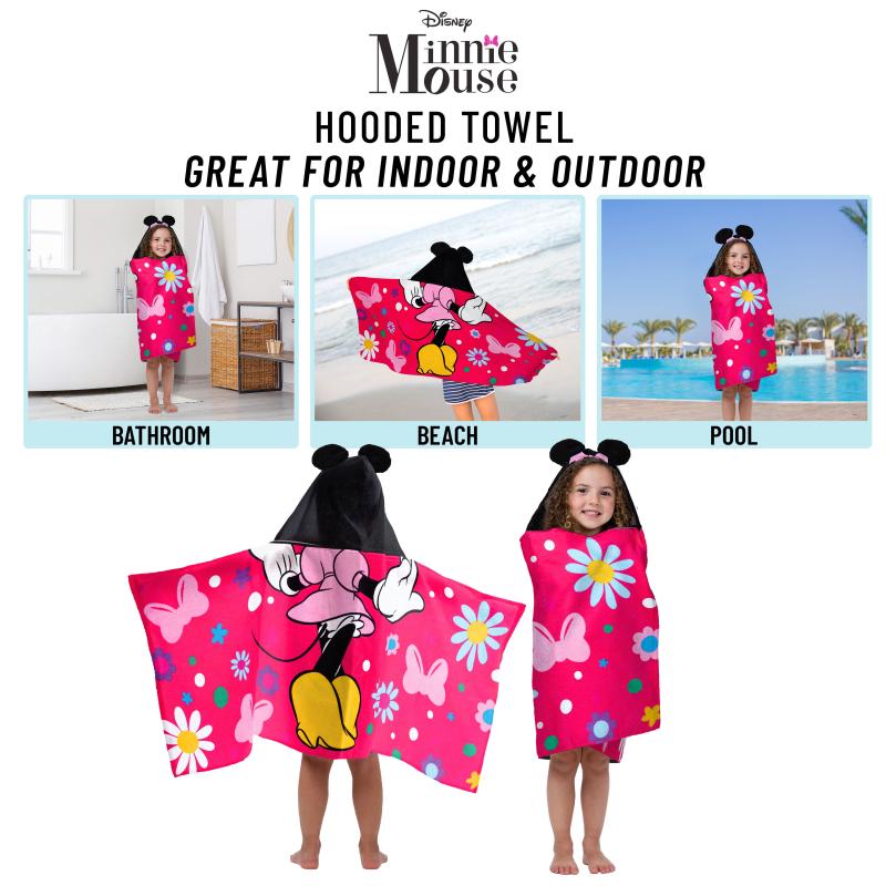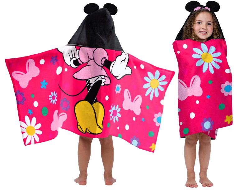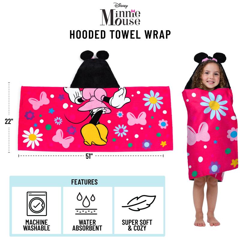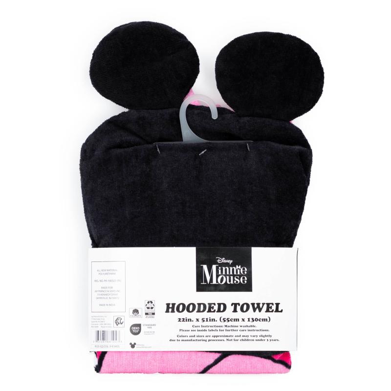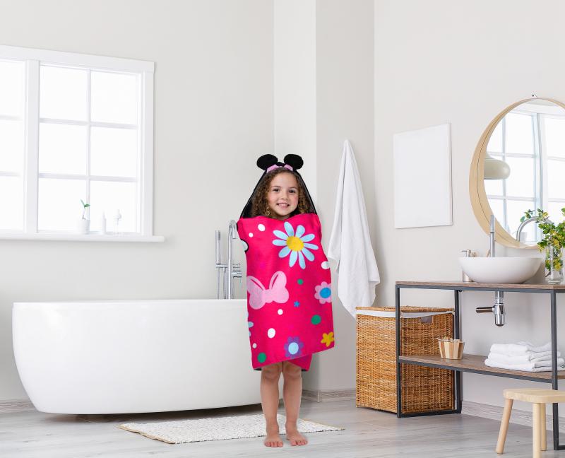 - Minnie Kids Bath Hooded Towel Wrap, 51 x 22, Cotton, Pink, Disney