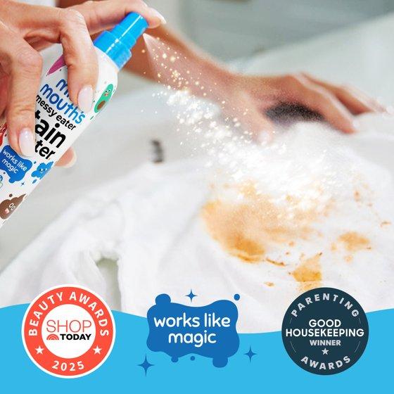 Meet the must-have stain solution every parent (and laundry pile) needs: Miss Mouth’s Messy Eater Stain Treater Spray. Specially made for babies, toddlers, and messy eaters of all kinds, this powerful spray tackles tough stains fast — from food and formula to grease, coffee, juice, and even blood — all without the need for dry cleaning.