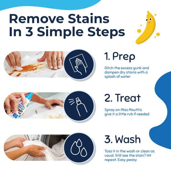 - Simple, No-Stress Application Just dampen any dried mess, spray generously, rub gently if needed, and wash or launder as usual. Still see a stain? Reapply and repeat — it’s that easy.