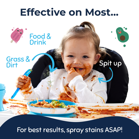 - Effective on Baby & Everyday Messes From baby food to fruit juice, formula, ketchup, and even tough stains like blood, this spray works wonders on both fresh spills and not-so-fresh surprises.