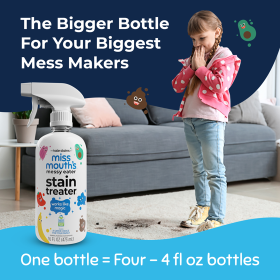 Meet the must-have stain solution every parent (and laundry pile) needs: Miss Mouth’s Messy Eater Stain Treater Spray. Specially made for babies, toddlers, and messy eaters of all kinds, this powerful spray tackles tough stains fast — from food and formula to grease, coffee, juice, and even blood — all without the need for dry cleaning.