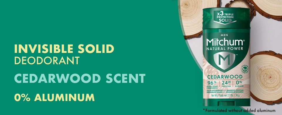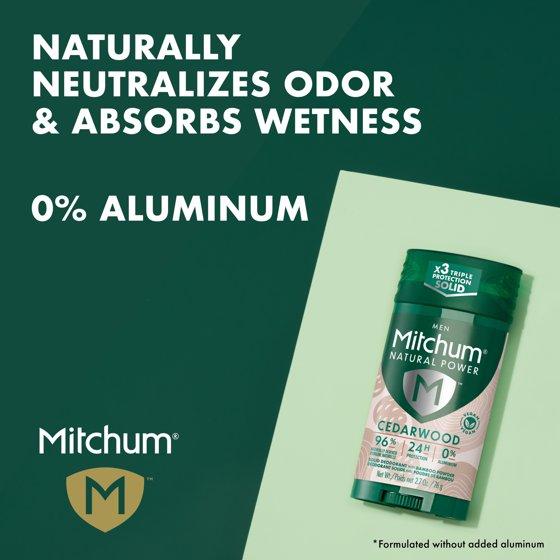 - 0% aluminum—Mitchum® Natural Power Men’s Solid Deodorant gives you 24HR odor control
