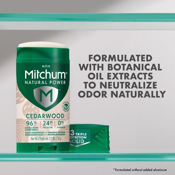 Mitchum Men’s Natural Power Deodorant Solid, Cedarwood, 2.7 oz