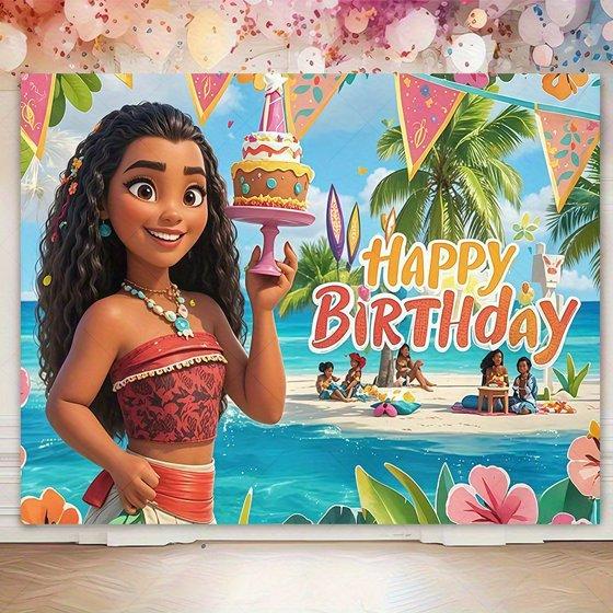 Moana birthday banner, indoor/outdoor use, photo booth background, home decoration, party banner decoration - Birthday party decoration/Tropical beach theme, birthday party decoration