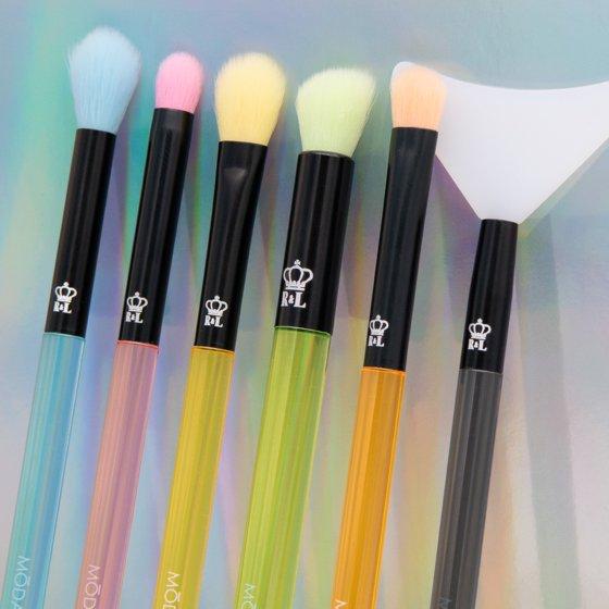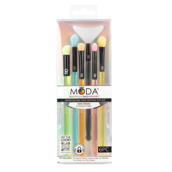 Moda Brush Neon Blend and Defend 6pc Makeup Brush Kit, Includes Eye Shield, Crease, and Detail Brushes