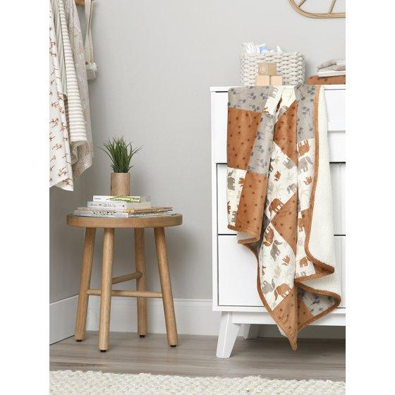 Modern Moments by Gerber Baby & Toddler Boy Super Soft Patchwork Blanket, Beige Safari