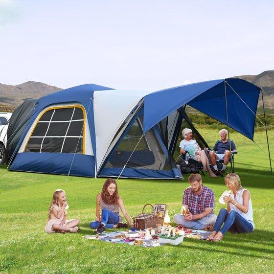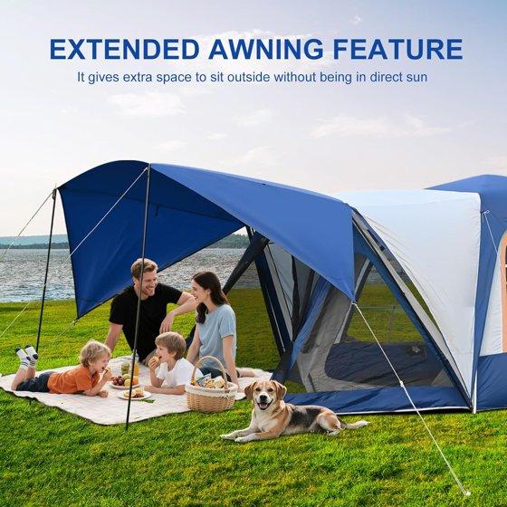 - Dual Doors with Awning Function & Extra One Pole Set:The dual-door design offers easy access, and includes an extra one pole set to prop up either door, creating an awning or sunshade for added outdoor relaxing space. (Note: This extra pole set is provided as a gift and can be used for either door.)