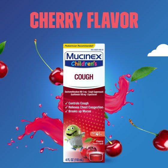 Mucinex Children's Cough Medicine, Liquid Cough Suppressant & Expectorant for Kids, Cherry Flavor, 4 fl oz