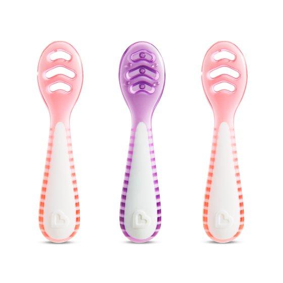 Munchkin® Gentle Dip™ Multistage First Infant Spoons, Pink/Purple, Unisex, 3 Pack