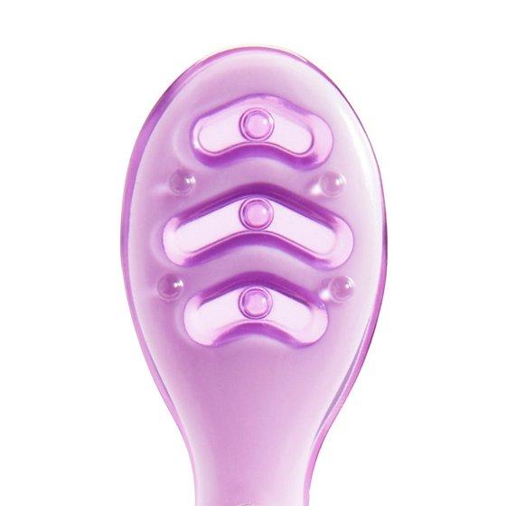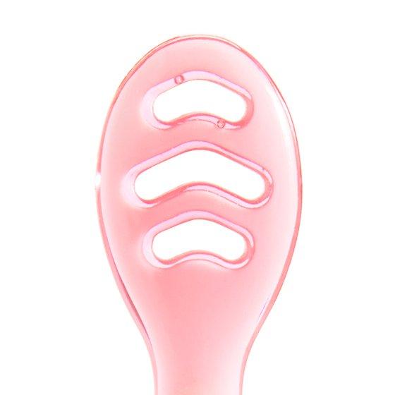 - The perfect first spoon set; includes one Stage 1 spoon (light purple) and two Stage 2 spoons (light pink)