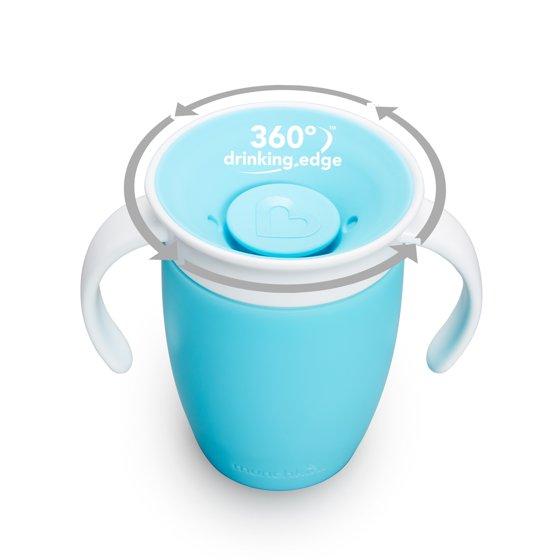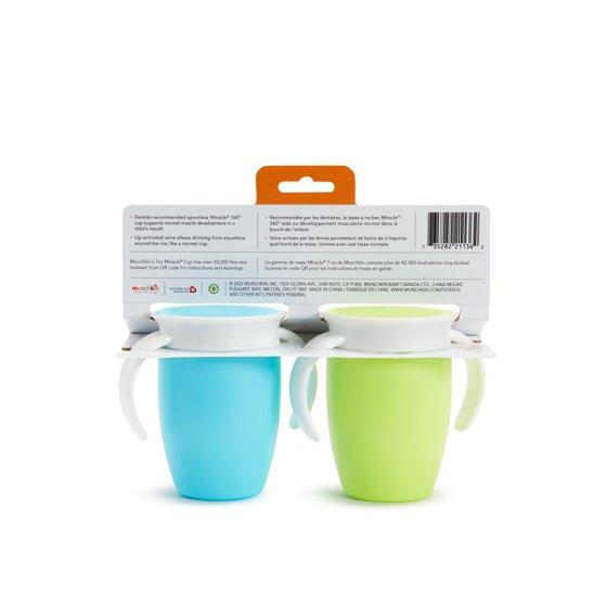 Munchkin Miracle 360° Trainer Sippy Cup with Handles, Spill Proof, 7 oz, 2 Pack, Blue/Green, Unisex