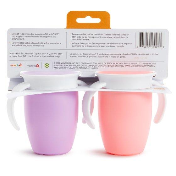 Munchkin® Miracle® 360° Trainer Sippy Cup with Handles, Spill Proof, 7 oz, Pink/Purple, Unisex, 2 Pack