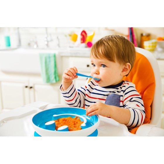 Caution: Wash and inspect before use. Do not microwave, boil or steam sterilize. Discard and replace at first sign of weakness or damage. Always check temperature before feeding. Do not let child walk or run while carrying the spoon. Do not leave child unattended during use. Discard all packaging components before use.