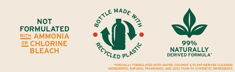 Specially Formulated with: Water, Coconut & Plant-Derived Cleaning Ingredients, Natural Fragrance, and 2% Synthetic Ingredients.