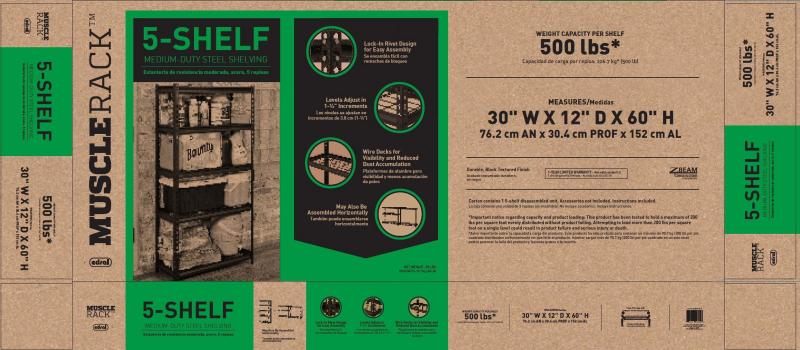 (2 pack) Muscle Rack 30"W x 12"D x 60"H 5-Tier Steel Shelving with Wire Decking; 2,500 lb. Total Capacity; Black