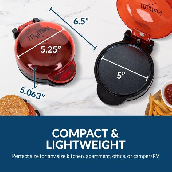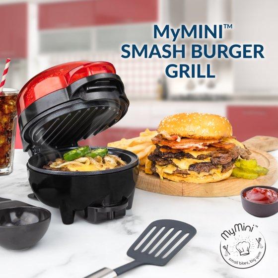 MyMini 5" Smash Burger Griddle with Bun Warmer, 600 Watts, Non-stick, Red