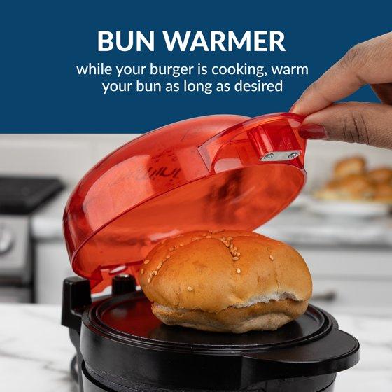 - BUN WARMER: Keep hamburger buns warm and toasty with the bun warming surface and covering, which closes with a secure magnetic latch.