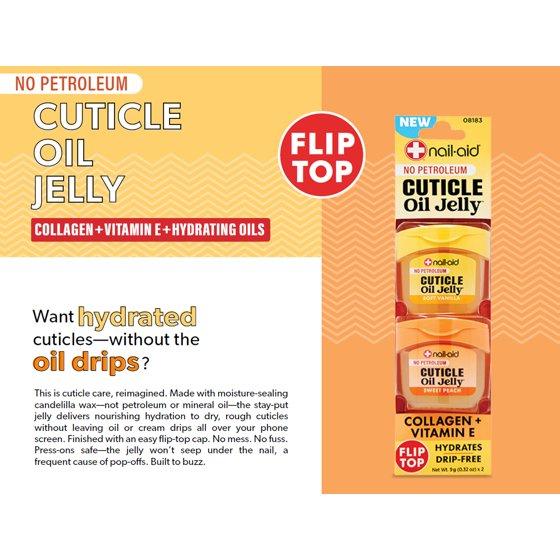 NAIL-AID Cuticle Oil Jelly, Press-On Friendly Non-Drip Cuticle Treatment for Dry Cracked Cuticles and Hangnails, Collagen + Vitamin E, CleanClick™ Secure Flip-Top Cap, Petroleum-Free.