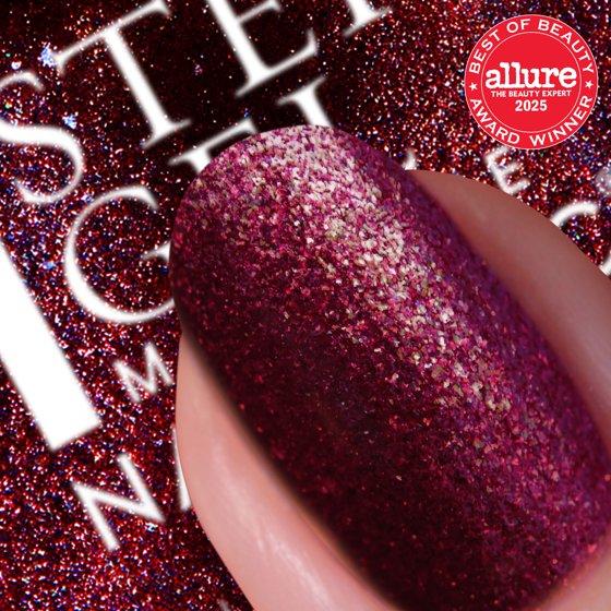 - 1-Step Gel Nail Polish - It’s Topless is formulated with glass particles to give your mani that glossy gel finish. Giving you the effect of a flawless salon-quality mani all with the ease of a one-step application process. Scarlett is a burgundy shimmer shade. *Nail Image shows 3 layers of polish