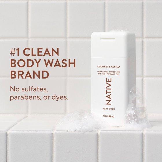 Native Body Wash, Sulfate Free, Coconut & Vanilla, for Women and Men, Travel Size 3 oz