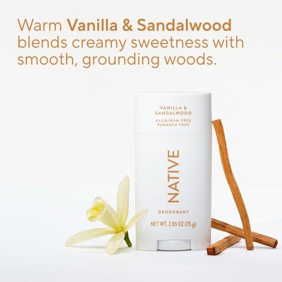 Native Deodorant, Aluminum Free for Women and Men, Vanilla & Sandalwood, 2.65 oz