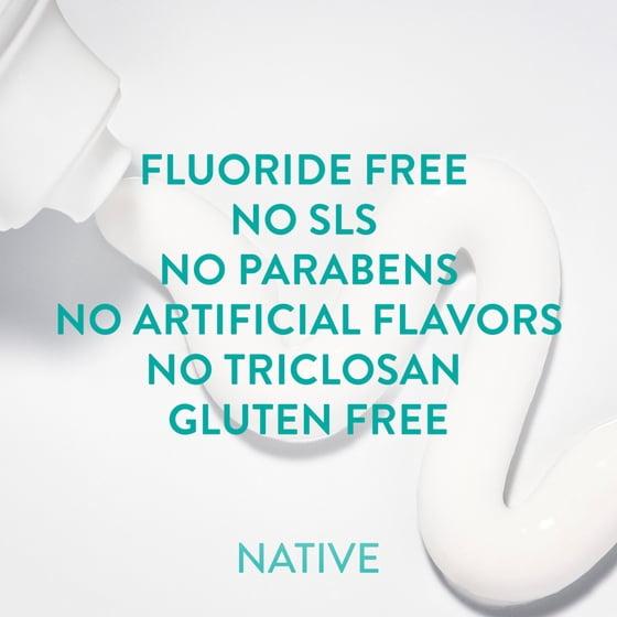 - Fluoride Free. Thoughtfully crafted without fluoride, SLS, parabens, artificial sweeteners, artificial flavors, triclosan or gluten.