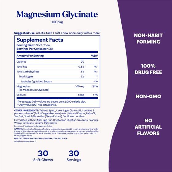- DELICIOUS TASTING SOFT CHEWS: Magnesium glycinate soft chews feature a delicious cherry lemon flavor and are gentle on the stomach and free of major allergens; 30 soft chews for a 30 day supply