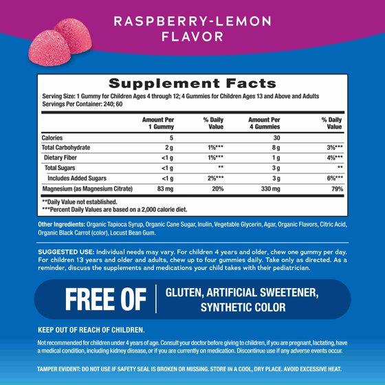 Calm Magnesium Citrate Supplement | 240 Gummies | Raspberry Lemon Flavor | by Natural Vitality