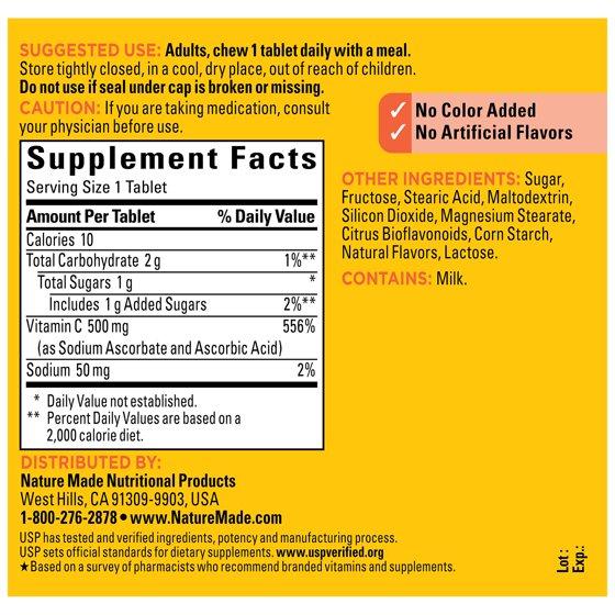 - Back in original orange flavor; adults chew one of these Nature Made Vitamin C 500mg chewable tablets daily with a meal